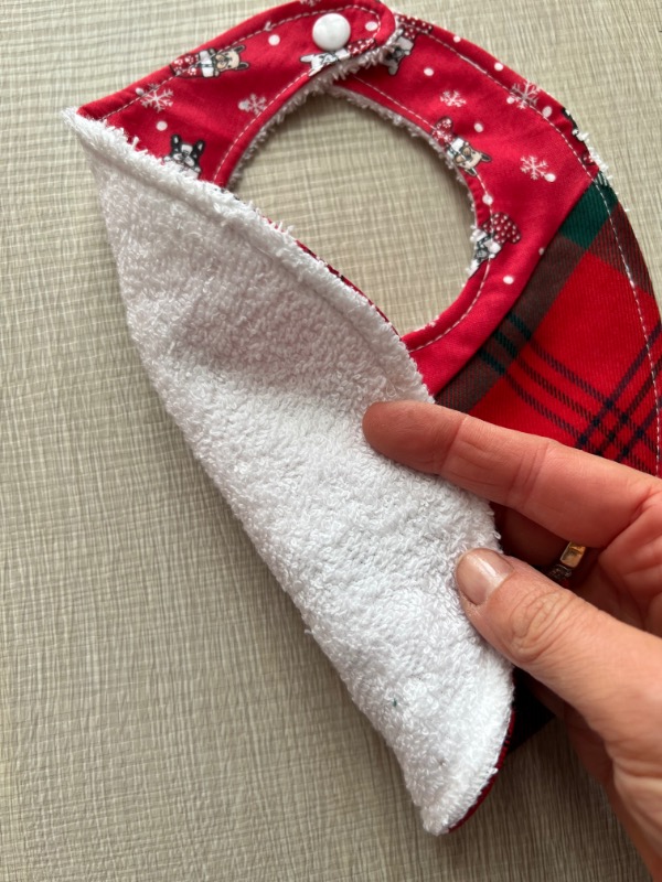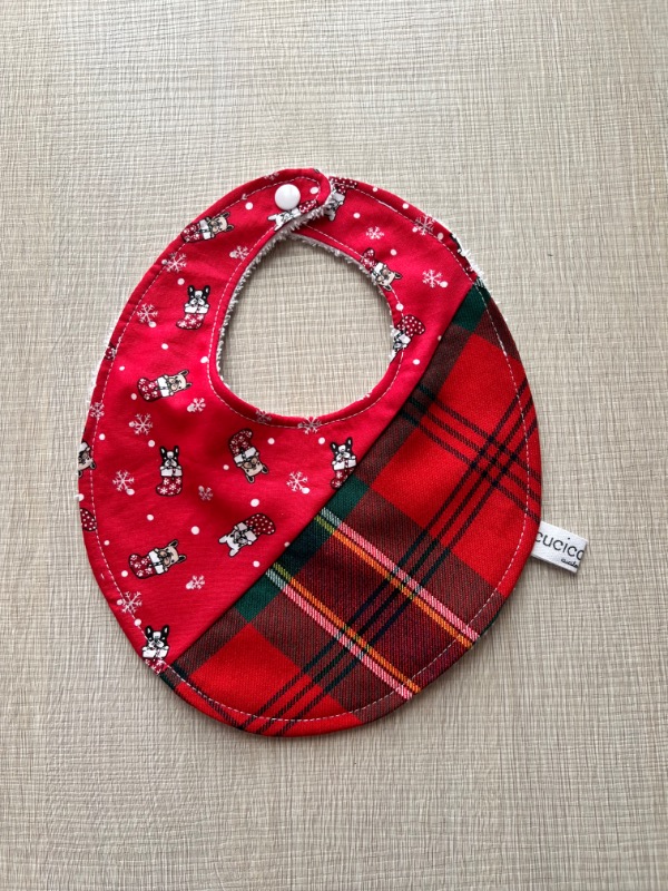 Bavaglino a tema natalizio in cotone e spugna 100% certificati e atossici, quindi adatti ai bambini e alla loro pelle delicata.
