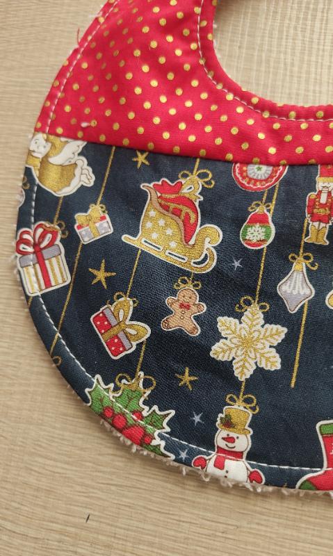 Bavaglino a tema natalizio in cotone e spugna 100% certificati e atossici, quindi adatti ai bambini e alla loro pelle delicata.
