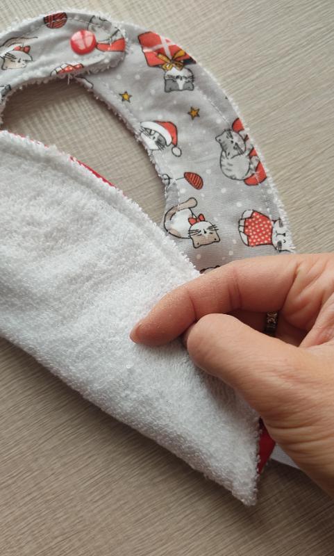 Bavaglino a tema natalizio in cotone e spugna 100% certificati e atossici, quindi adatti ai bambini e alla loro pelle delicata.
