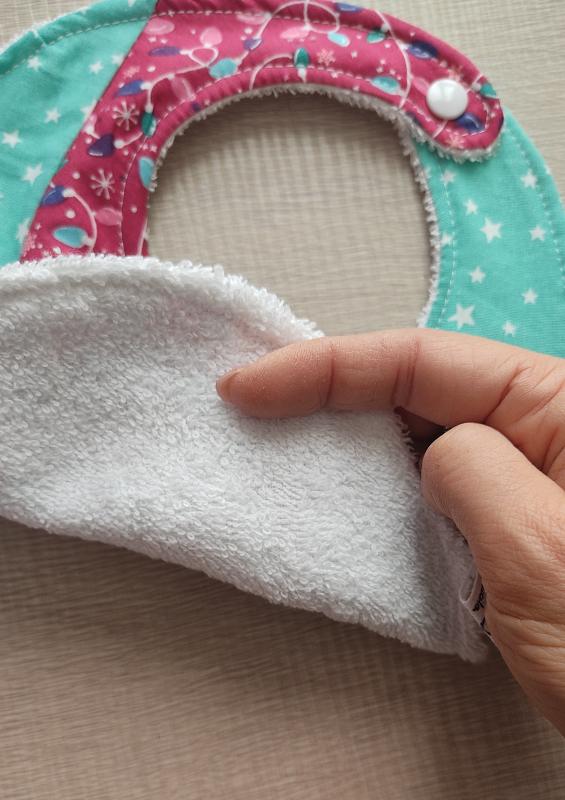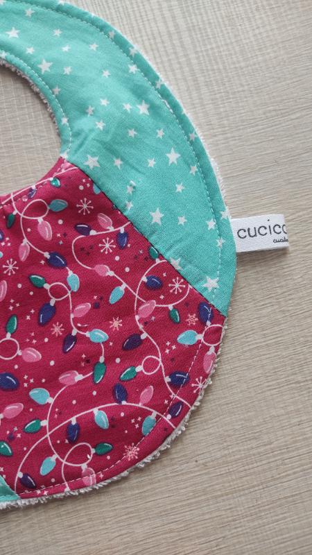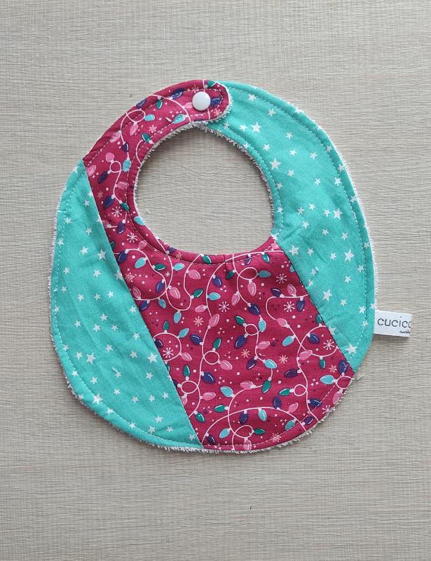 Bavaglino a tema natalizio in cotone e spugna 100% certificati e atossici, quindi adatti ai bambini e alla loro pelle delicata.