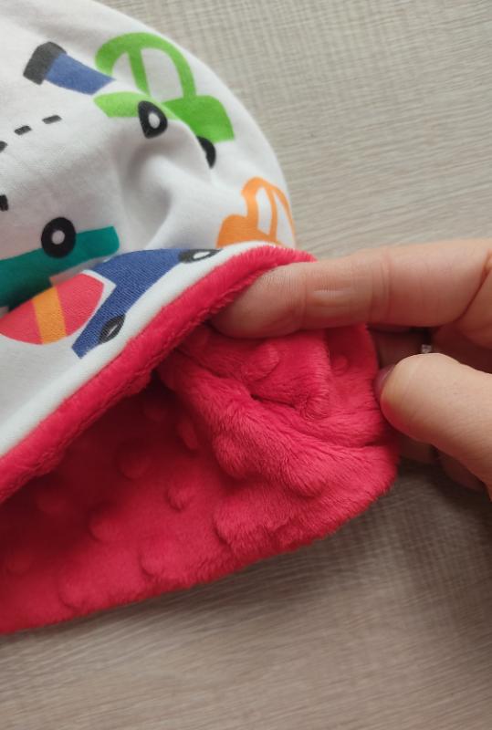 Questo berrettino è realizzato in morbido jersey e minky pile, perfetto per proteggere il vostro bimbo durante i mesi più freddi dell’anno.
