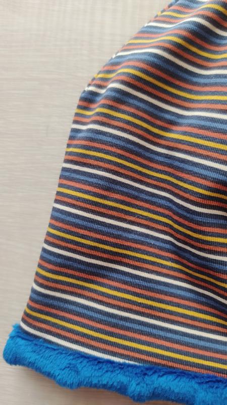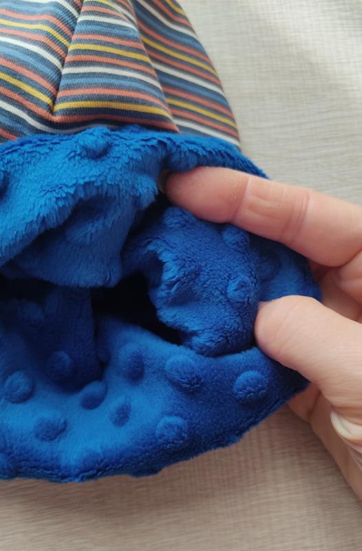 Questo berrettino è realizzato in morbido jersey e minky pile, perfetto per proteggere il vostro bimbo durante i mesi più freddi dell’anno.