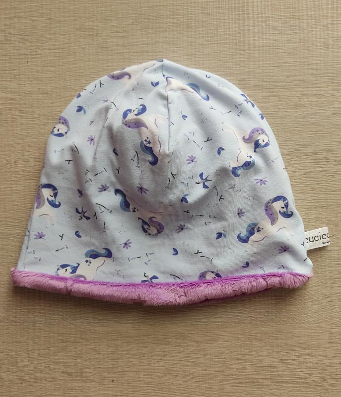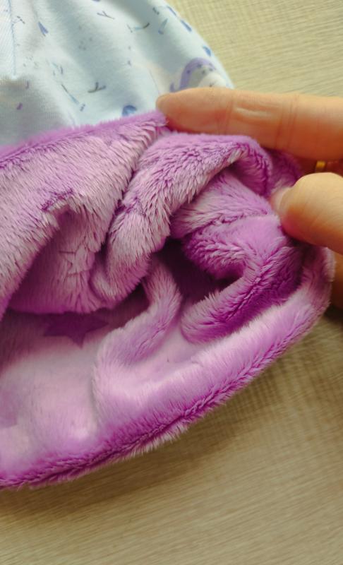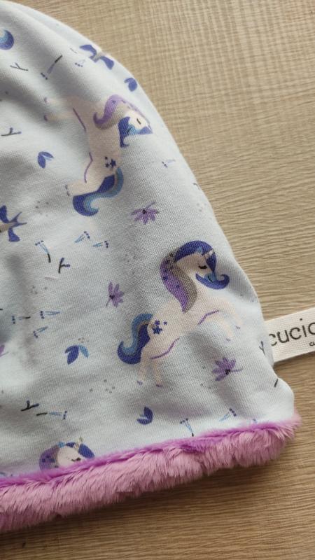 Questo berrettino è realizzato in morbido jersey e minky pile, perfetto per proteggere il vostro bimbo durante i mesi più freddi dell’anno.