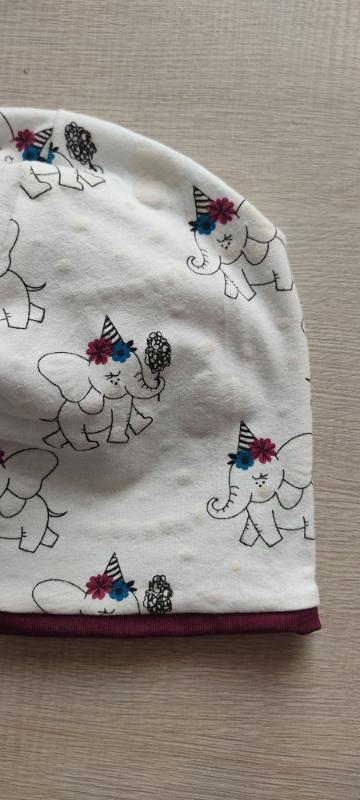 Berrettino Jersey Magico Elefantini interno vinaccia 3-6 anni