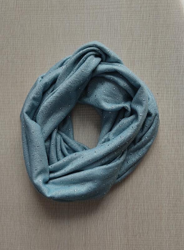 Scaldacollo ad anello in sofficissima maglina con pois in rilievo, leggerissima, perfetto per la mezza stagione e l’estate